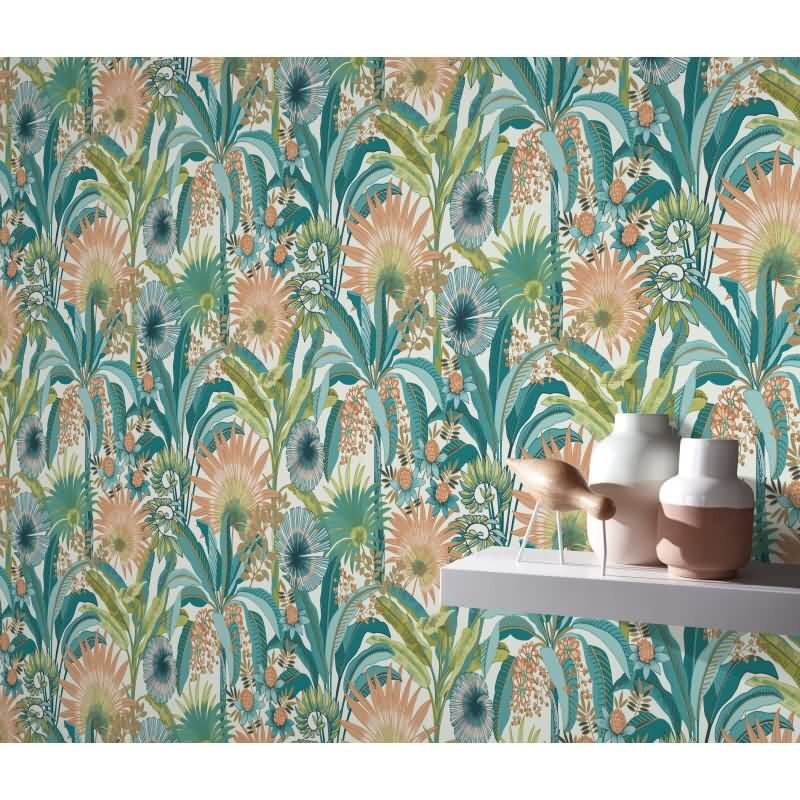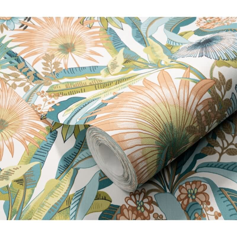 Vinyltapete Türkis-Orange tropische Frische Erismann Martinique (KG-177687)