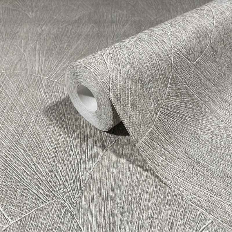 Vliestapete mit strukturiertes Blattmotiv grau Floral (KG-171415)