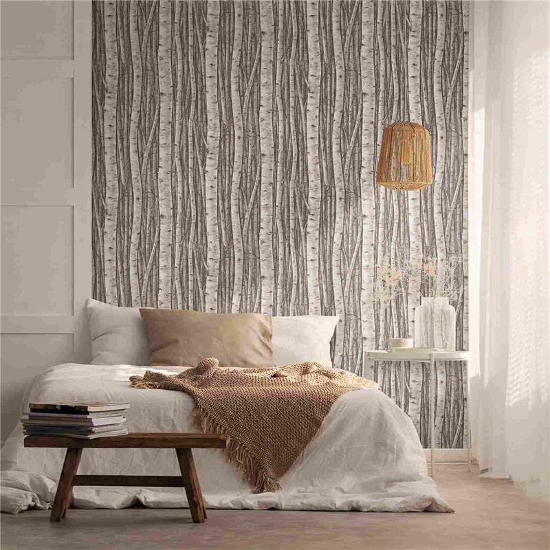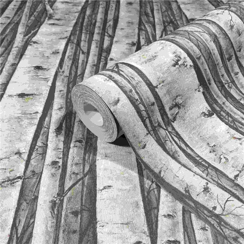Vliestapete mit Wäldern und Buchenbäumen grau, braun Floral (KG-171425)