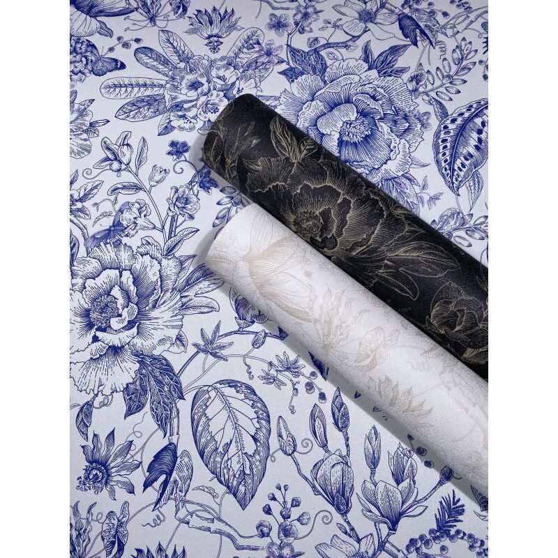 Vliestapete Blumen, Blätter Floral Natur matt in Schwarz für Wohnzimmer, Schlafzimmer, Büro (KG-172657)