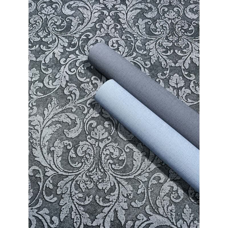 Vliestapete Ornament Ornamental Klassisch matt in Anthrazit für Wohnzimmer, Schlafzimmer (KG-172670)