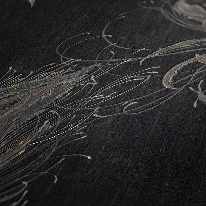 Mit ihrem großen, dekorativ geschwungenen Feder-Ornament erinnert diese Tapete an den Jugendstil und an die opulenten... mehr >