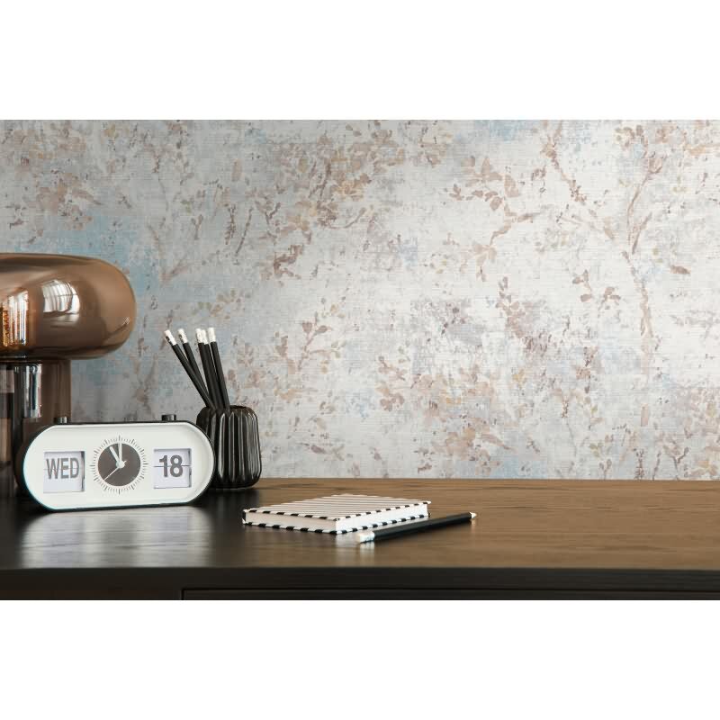 Florale Tapete Vintage Beige Blau - Vliestapete mit Ästen & Blütenmuster (KG-172946)