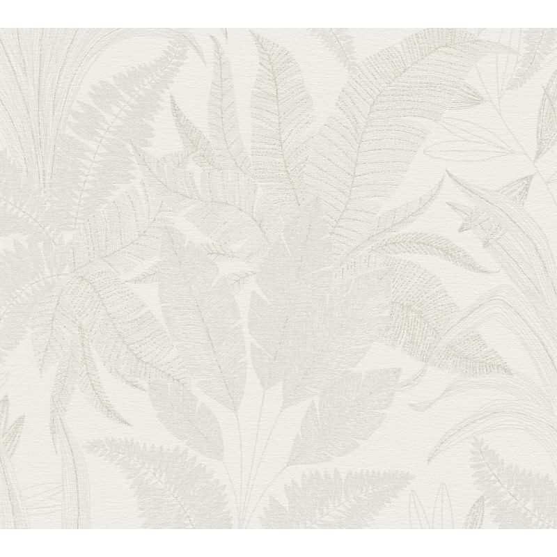 Dschungel Tapete Creme Beige - Helle Blätter Optik dezent - Strukturierte Vliestapete (KG-172967)