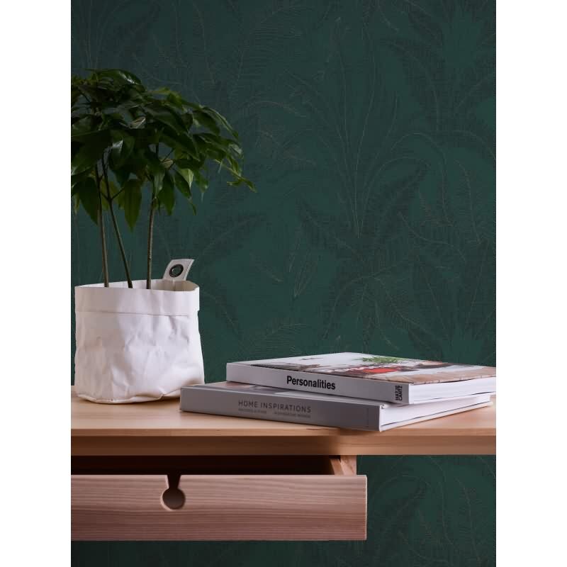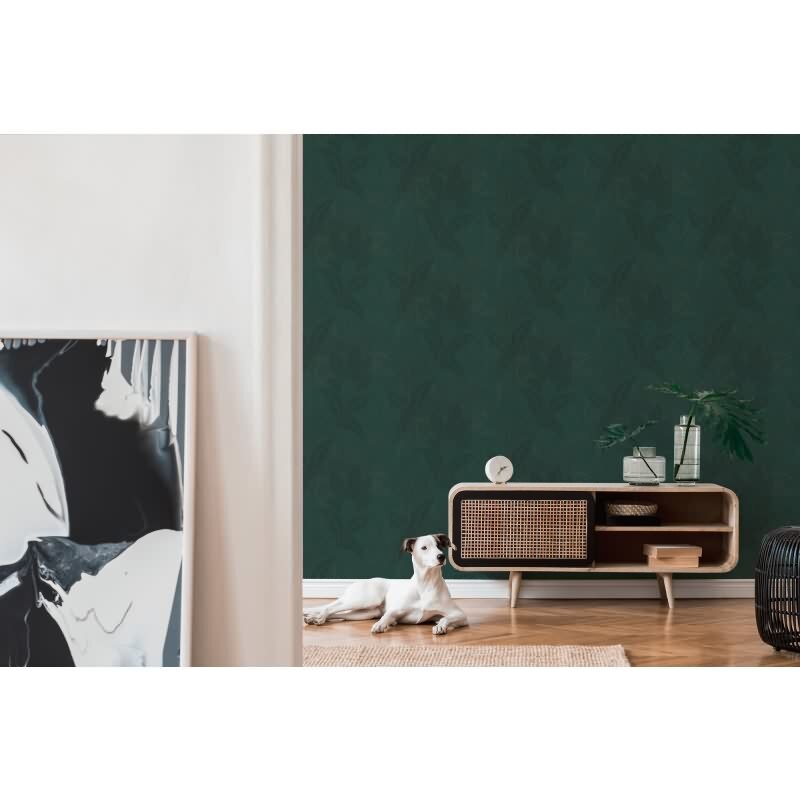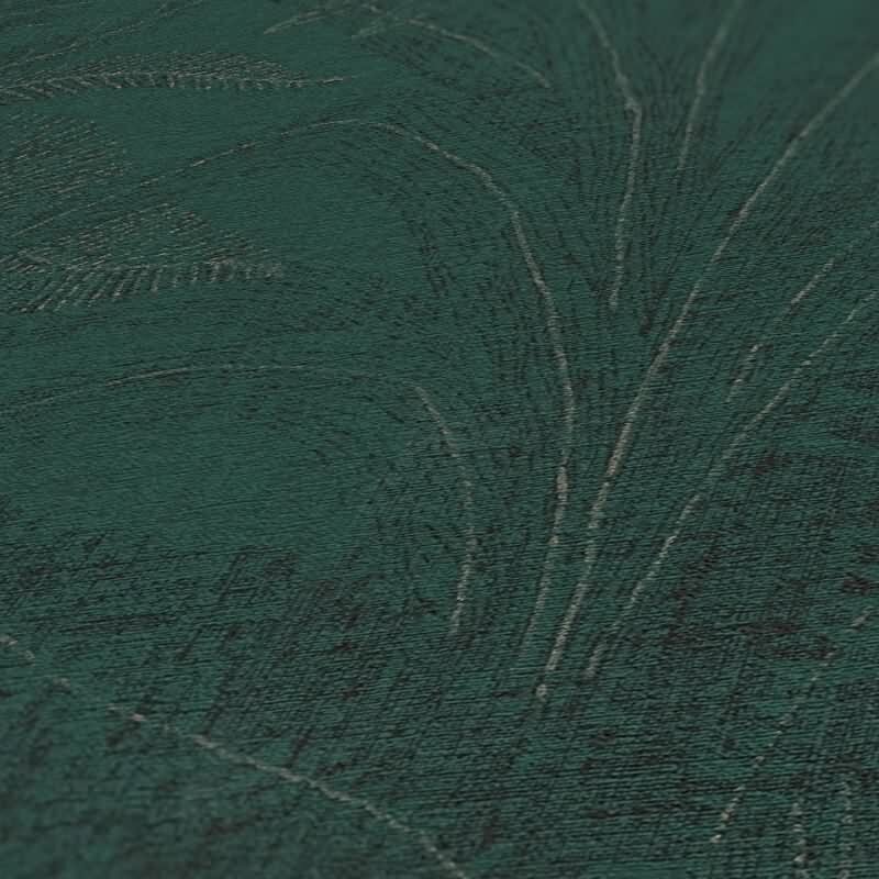 Dschungel-Tapete Dunkelgrün Schwarz - Edle Blätterstruktur - Tropen Vliestapete modern (KG-172968)