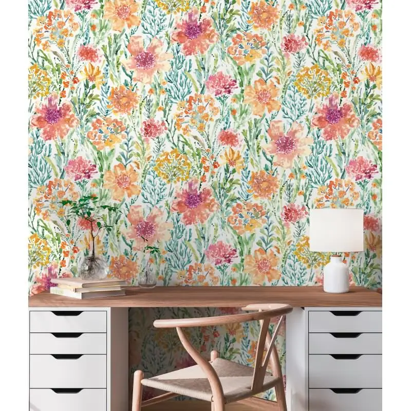 Florale Mustertapete Weiß Rot Orange - Vliestapete mit Aquarell-Blumenmotiv AS-Creation (KG-174500)