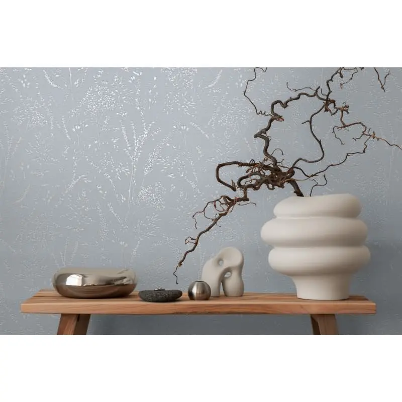 Florale Mustertapete Blau Grau - Vliestapete mit Gräser Motiv - Strukturtapete dezent AS-Creation (KG-174518)