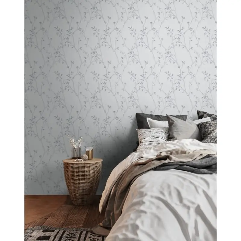 Pflanzen-Tapete Grau Anthrazit - Vliestapete mit Zweigen - Florale Mustertapete modern AS-Creation (KG-174524)