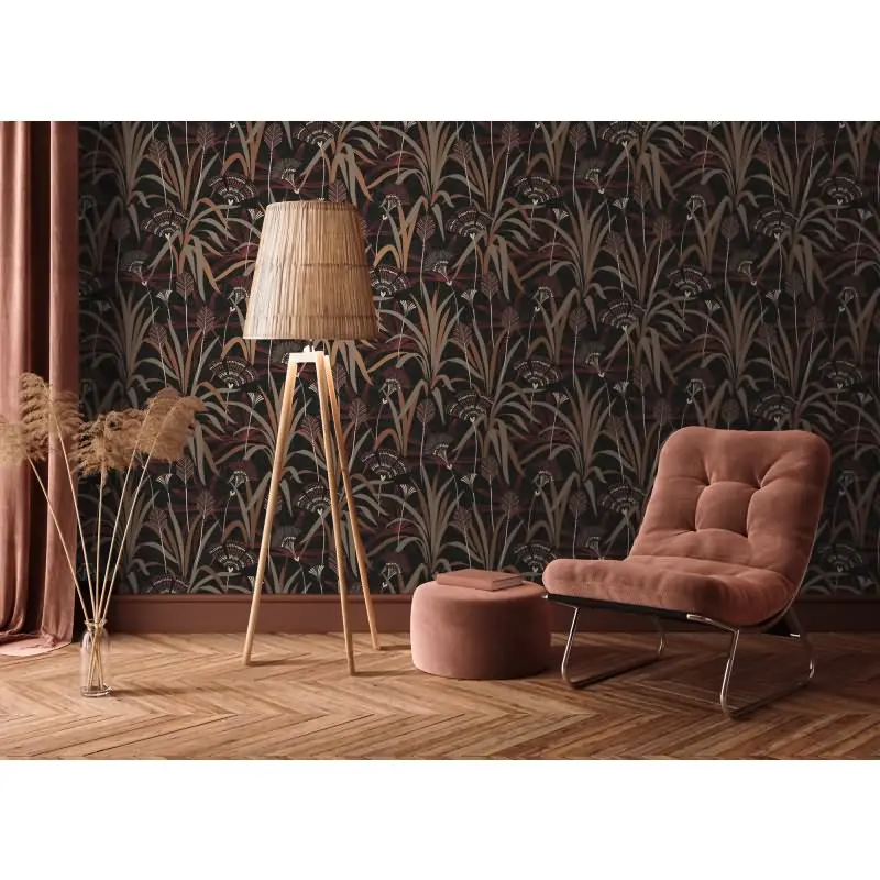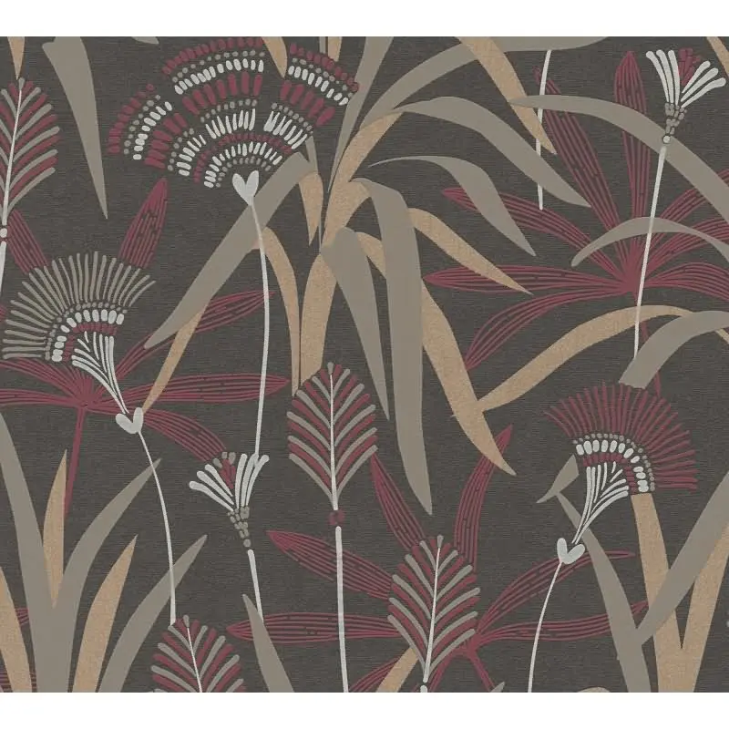 Vliestapete Blätter Schwarz Rot Metallic - Ausdrucksstark & Elegant AS Creation (KG-176085)
