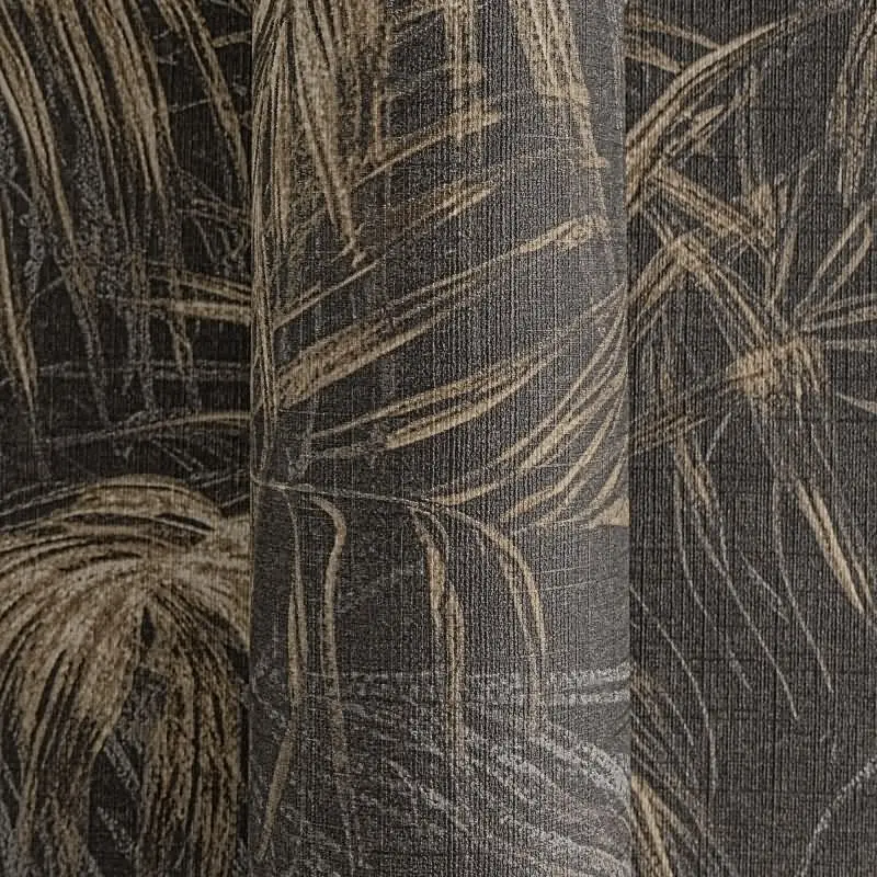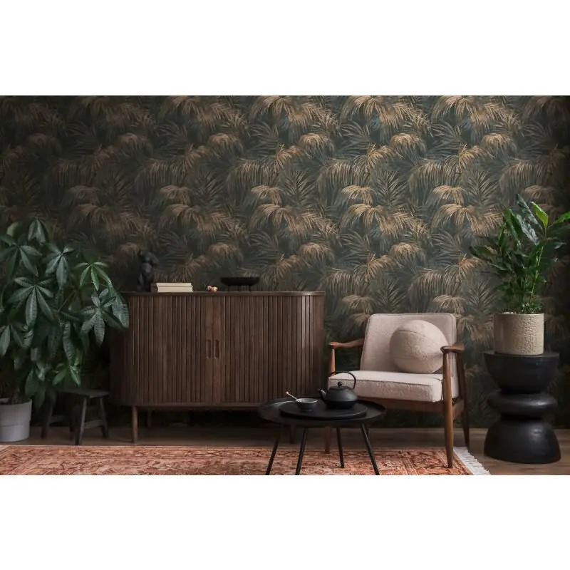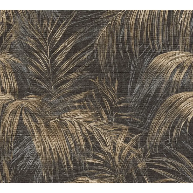 Vliestapete mit goldenen Palmenblättern auf schwarzem Hintergrund (KG-175896)