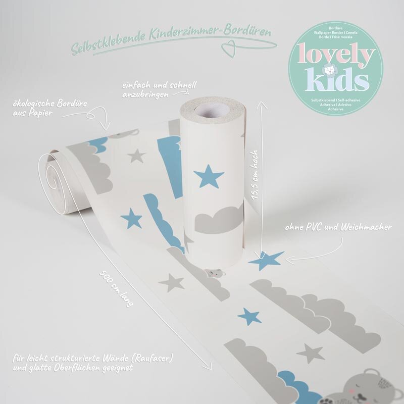 Die selbstklebenden Bordüren der Kollektion "Lovely Kids" von A.S. Création sind kinderleicht an die Wand zu bringen und... mehr >