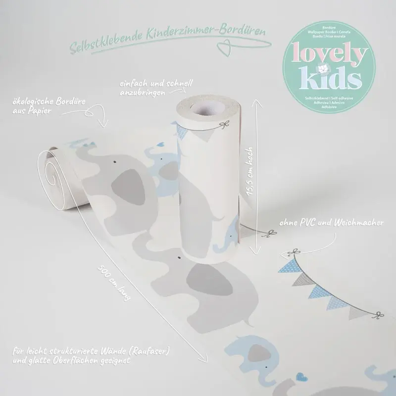 Die selbstklebenden Bordüren der Kollektion "Lovely Kids" von A.S. Création sind kinderleicht an die Wand zu bringen und... mehr >