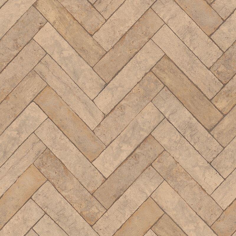 Mit dieser Tapete von Rasch bringen Sie im Handumdrehen den Look von Pflasterklinker im Fischgrät-Verband an Ihre Wände. Das... mehr >