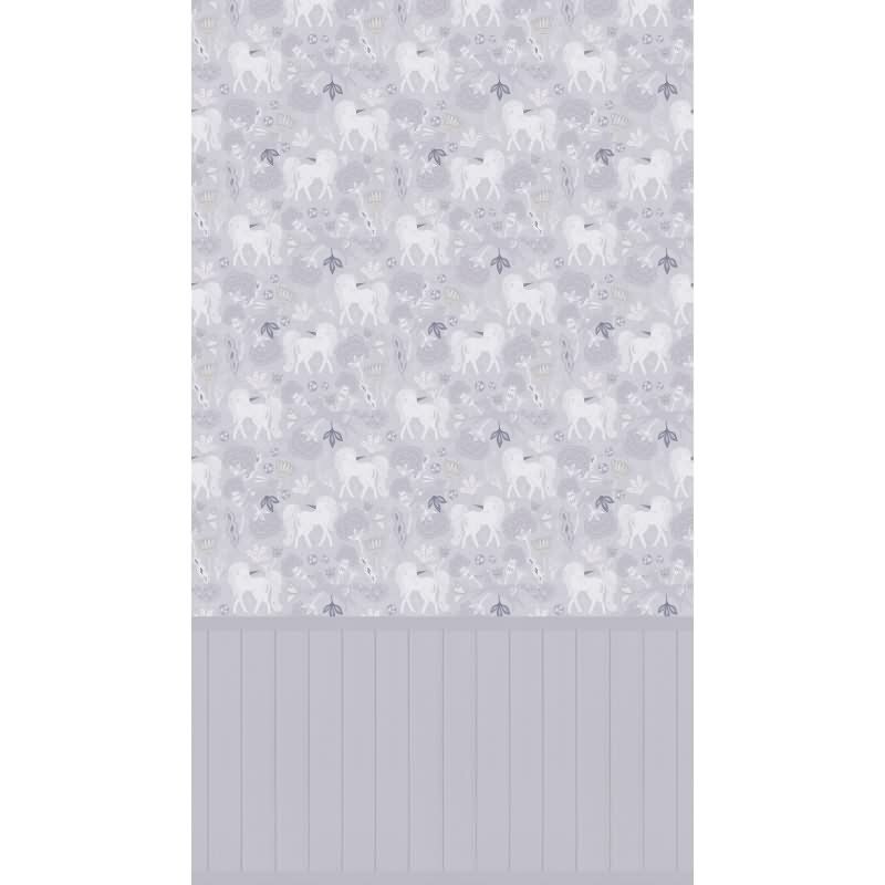 Einhorn Fototapete Grau Vliestapete mit Holzpaneel Märchenhafte Tapete für Kinderzimmer (KG-172168)