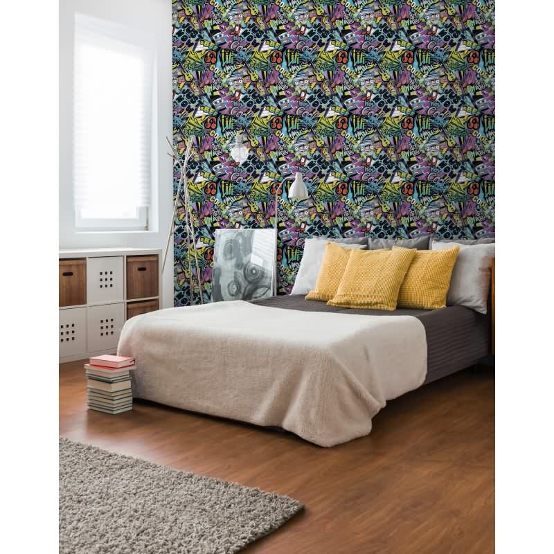 Graffiti-Tapete bunt Comic-Stil Mustertapete Streetart Look Vliestapete Jugendzimmer Jungen (KG-172195)