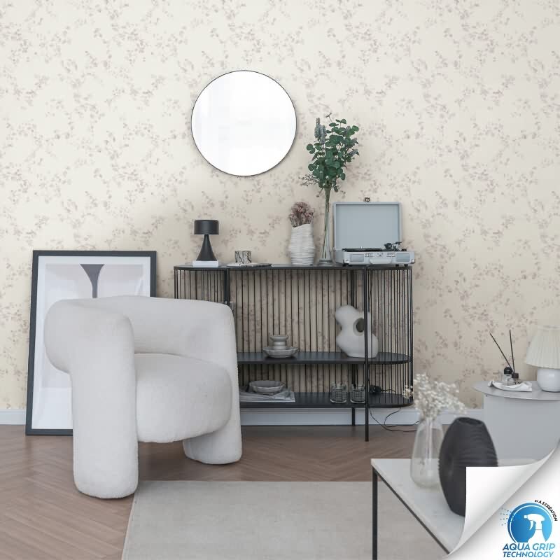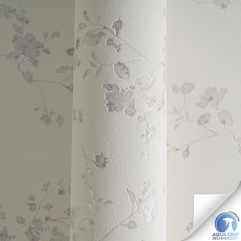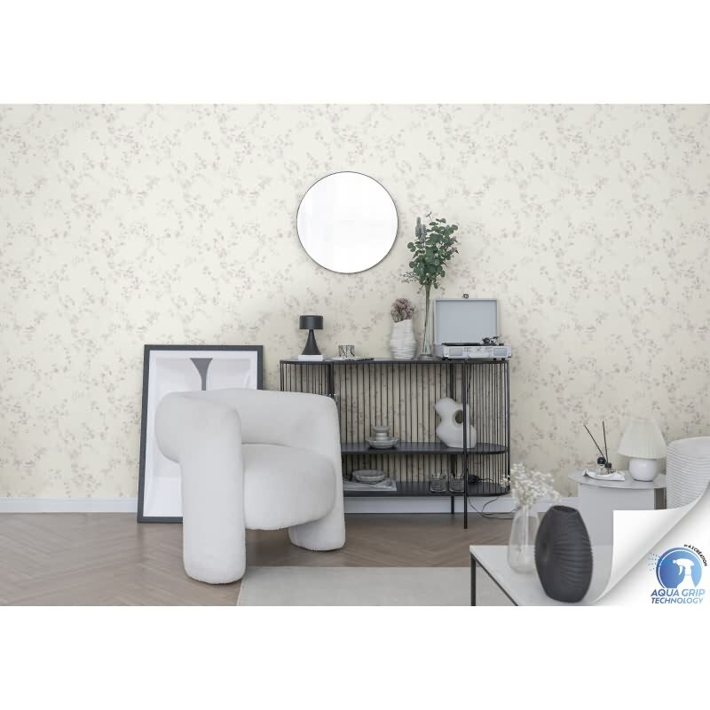 Vorgekleisterte florale Vliestapete Weiß Rosa - Landhaus Blütentapete mit Zweigen (KG-172828)