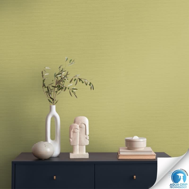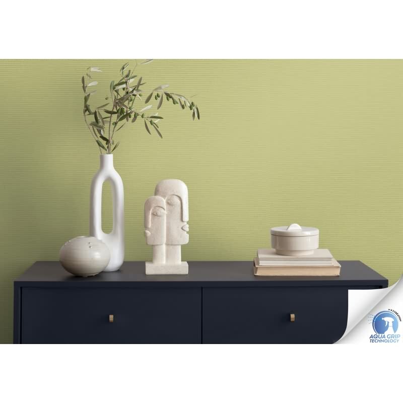 Vorgekleisterte Unitapete Textilstruktur Grün - stilvolle einfarbige Vliestapete (KG-172832)