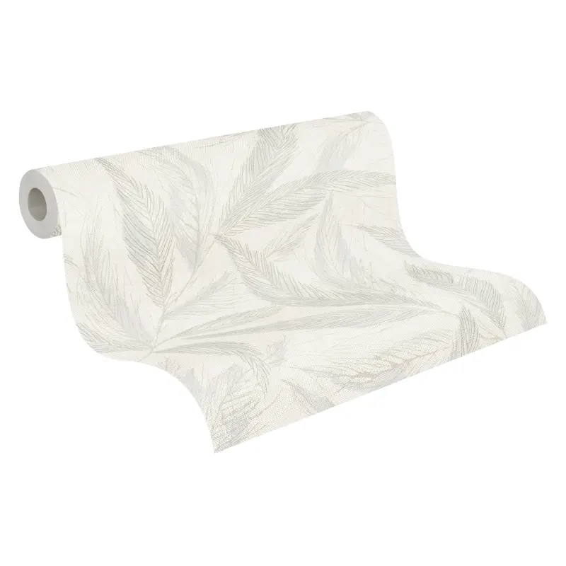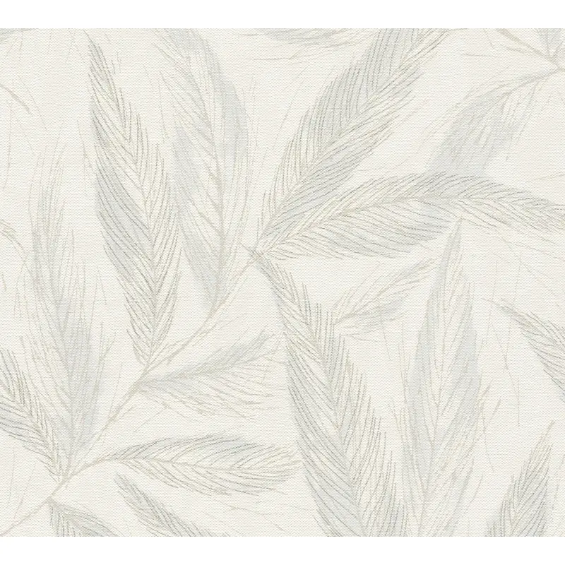 Palmblatt-Tapete Creme Blau - Vliestapete mit Blattmuster in Leinenstruktur (KG-175817)