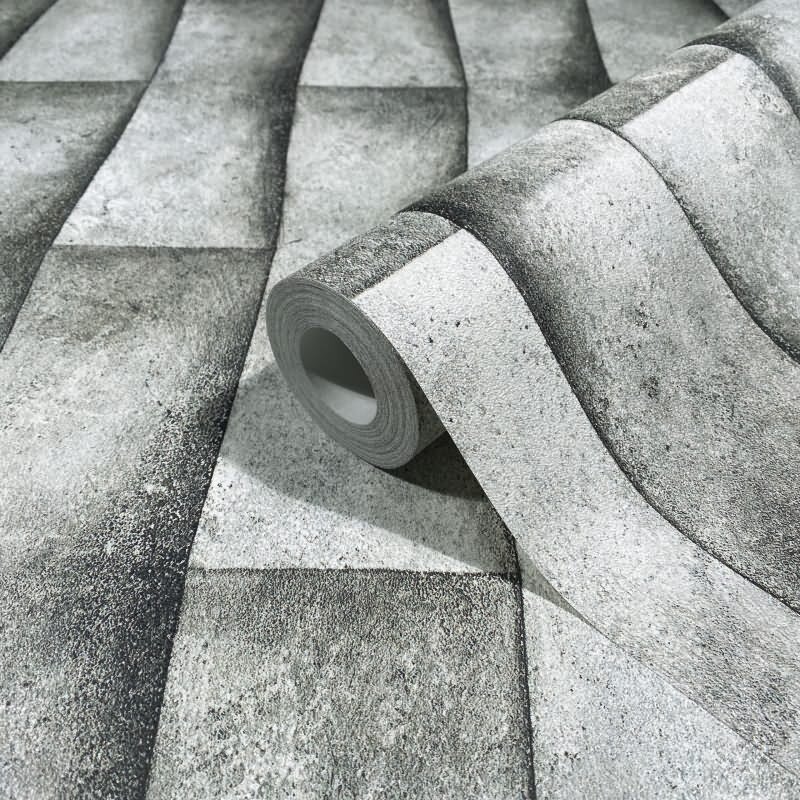 Vliestapete in grau Putzoptik Illusion 3D-Optik Streifen Modern Industrial-Look (KG-171539)