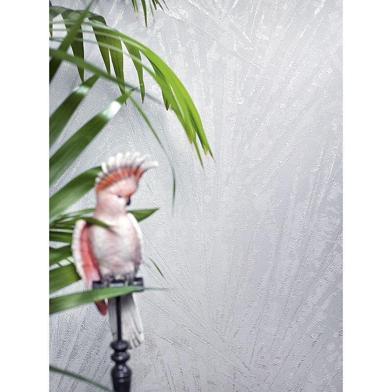 Mit dieser Tapete zieht der unverkennbare Style von Papis Loveday stilsicher in jeden Raum. Das Motiv mit grafisch abstrahierten Palmenblättern, reizvollen Hoch-Tief-Strukturen und Metallic-Akzenten rückt den Kontrast zwischen Natürlichkeit und High Fashion-Inszenierung in den Fokus. Diesen Spannungsbogen verkörpert Papis Loveday als weltberühmtes Model mit senegalesischen Wurzeln par excellence.