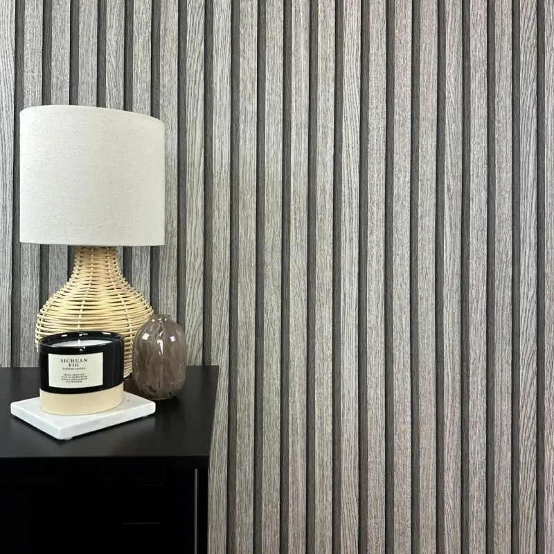 Diese graue Tapete in Holzpaneel-Optik ist ein absoluter Eyecatcher und ein trendiges Must-have für jeden, der seinen Wänden einen realistischen Holzwand-Look mit 3D-Effekt verleihen möchte. Die Vliestapete ist den beliebten Akustikpaneelen aus Echtholz nachempfunden und durch die authentische Farbgebung und Prägestruktur kaum von echten, hölzernen Lamellen zu unterscheiden. Zudem ist sie eine preisgünstige Alternative, die sich schnell und einfach anbringen lässt. Bahnen zuschneiden, Wand einkleistern, Bahn für Bahn anbringen, fertig! Die Holzpaneel-Tapete in Grau eignet sich perfekt für eine Akzentwand und lässt ein natürliches, gemütliches Ambiente voller Wärme und Wohnlichkeit entstehen. Der 3D-Effekt verleiht der Vliestapete das gewisse Etwas und verwandelt jede Wand in einen modernen Blickfang in Holzlamellen-Optik.