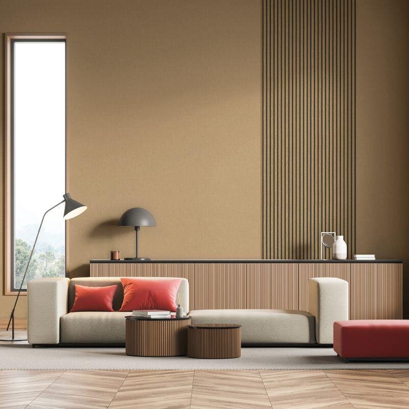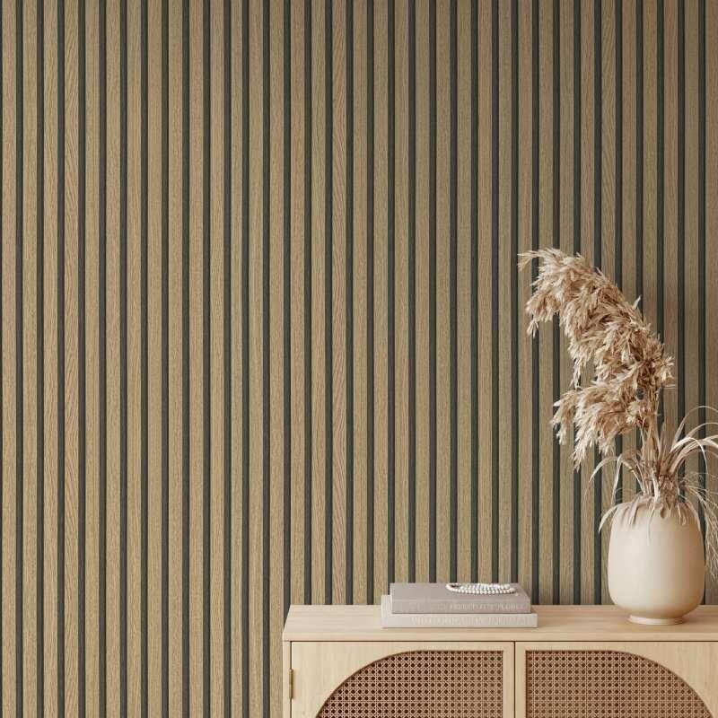 Diese braune Tapete in Holzpaneel-Optik ist ein absoluter Eyecatcher und ein trendiges Must-have für jeden, der seinen Wänden einen realistischen Holzwand-Look mit 3D-Effekt verleihen möchte. Die Vliestapete ist den beliebten Akustikpaneelen aus Echtholz nachempfunden und durch die authentische Farbgebung und Prägestruktur kaum von echten, hölzernen Lamellen zu unterscheiden. Zudem ist sie eine preisgünstige Alternative, die sich schnell und einfach anbringen lässt. Bahnen zuschneiden, Wand einkleistern, Bahn für Bahn anbringen, fertig! Die Holzpaneel-Tapete in Braun eignet sich perfekt für eine Akzentwand und lässt ein natürliches, gemütliches Ambiente voller Wärme und Wohnlichkeit entstehen. Der 3D-Effekt verleiht der Vliestapete das gewisse Etwas und verwandelt jede Wand in einen modernen Blickfang in Holzlamellen-Optik.