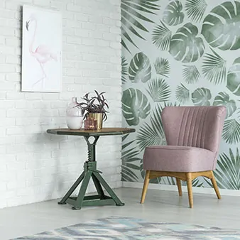 Zwei Wände treffen aufeinander: Floral room with pink chair: ©Photographee.eu/stock.adobe.com