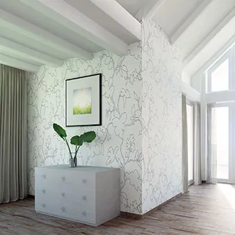 Wir empfehlen, in der sichtbarsten Ecke des Zimmers mit dem Tapezieren zu beginnen und die letzte Bahn im dunkelsten Bereich des Raumes zu verarbeiten. Setzen Sie die erste Tapetenbahn so an, dass sie maximal 1 cm über die Ecke hinausreicht. So wird beim Anbringen der nächsten Bahn nur ein minimaler Bereich des Musters verschluckt. Für die weiteren Ecken müssen die Bahnen entsprechend der Breite zugeschnitten werden. Auch hier sollte der Überstand so gering wie möglich sein. Statt eine neue Tapetenbahn nach der Ecke zu tapezieren, wird der abgeschnittene Streifen der letzten verklebt. Dieser sollte an einem Lot und nicht an der Ecke ausgerichtet werden. Die nächste Bahn wird dann auf Stoß mit dem Streifen angebracht und das Tapetenmuster wird so wenig wie möglich unterbrochen.