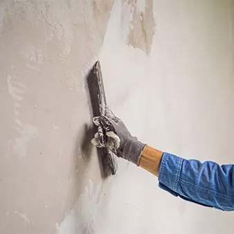 Spachteln: cmaster is applying white putty on a wall and smearing by putty knife in a room of renovating house in daytime: ©galitskaya/stock.adobe.com