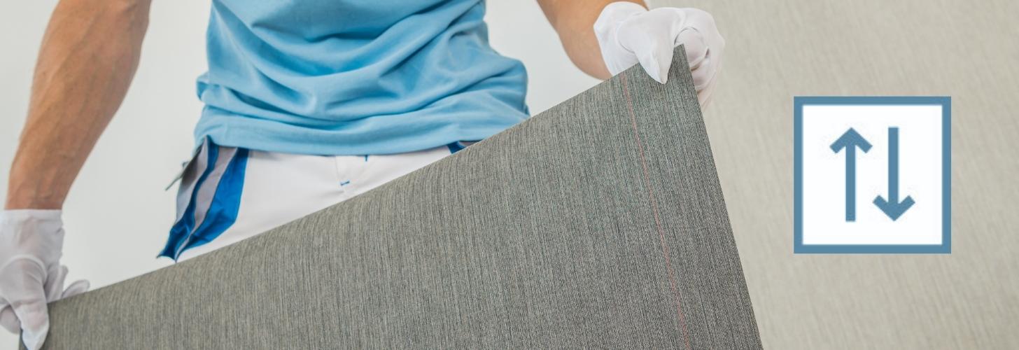 Viele Tapeten sind mit dem Gestürzt Kleben-Symbol versehen. Es beinhaltet zwei Pfeile nebeneinander, von denen einer nach oben und einer nach unten zeigt. Das bedeutet, dass jede Bahn entgegengesetzt zur vorherigen Bahn geklebt wird. So fallen drucktechnisch bedingte geringfügige Abweichungen an den Rändern der Tapete nicht auf und Nahtstellen sowie Übergänge der einzelnen Bahnen weisen keine Schattierungen auf. Die fertig tapezierte Wand erstrahlt in einem einheitlichen Bild. Die Vorgehensweise unterscheidet sich bis auf die 180 Grad-Drehung jeder zweiten Bahn nicht von der herkömmlichen Tapezierweise. Das Symbol für gestürztes Kleben von Tapeten ist somit absolut kein Grund, das Tapeziervorhaben mit Unsicherheit zu starten!