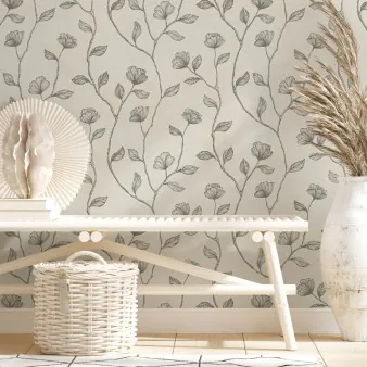| Flur-Tapete glänzende Blumenranken 1044428 | Flur Tapete Streifen 1044442 kombiniert mit Putzoptik 1044447 |