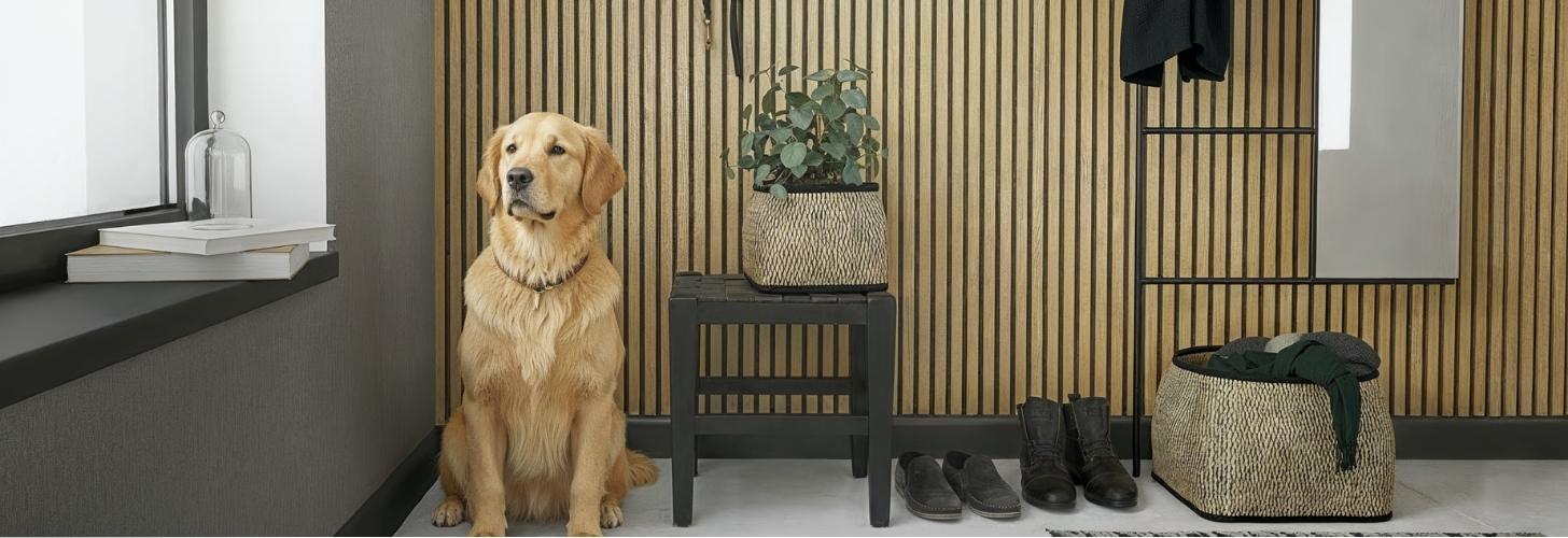 Telefonieren, Lesen oder Stricken – warum nicht einfach mal im Flur? Ein bequemer Sessel vor einer wohnlichen Holzoptik-Tapete platziert, verwandelt das funktionale Durchgangszimmer in einen charmanten Wohnraum. Barock Tapeten werden hinter Garderobe, Spiegel und Kommode zum gestalterischen Highlight und grenzen diesen Bereich vom Rest des Flures ab. Und Hundekörbchen, Katzen-Schlafplatz oder Kleintierkäfig erhalten mit einer nur für sie bestimmten Wandbekleidung einen eigenen Bereich.