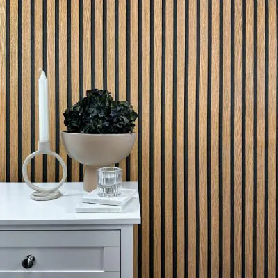 Lamellenwände, auch Slat Walls genannt, sind aus der Innenraum- und Wandgestaltung nicht mehr wegzudenken und dienen als optisches Highlight. Auch Tapeten im Look der beliebten skandinavischen Holzpaneele und Akustikpaneele sind dafür bestens geeignet. Sie kommen für die unterschiedlichsten Gestaltungsvorhaben, Einrichtungsstile und Räume infrage.