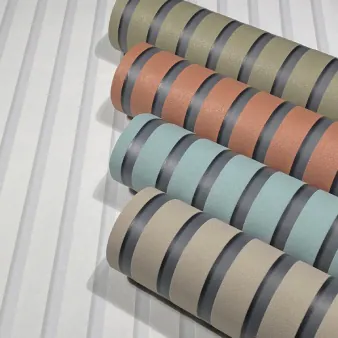 | Streifen & Prägung lassen Hoch-Tief-Effekt entstehen: Tapete 1044456 | Akustikpaneel-Look mit Kontrastwirkung: Tapete 1044454 |