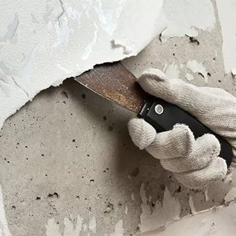 Tapeten entfernen: hand removing wallpaper from wall with spatula©rodimovpavel/stock.adobe.com