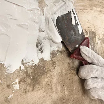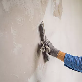 Wand glatt gleichmäßig: hand in glove plastering concrete wall with spatula©rodimovpavel/stock.adobe.com