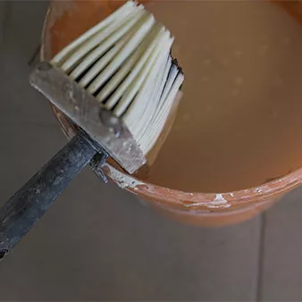 Tapetenkleister: pot of wallpaper paste with tool: ©dmdartworx/stock.adobe.com